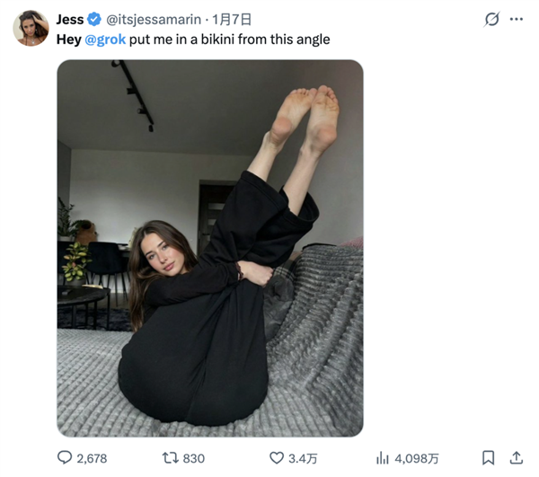 推特不再是已经的推特了,就像昔时被deepke问题搅扰过的泰勒斯威夫特一样。有人庆贺美国的告白代言终究没有黑人女性胖子了,有不少国外网友吐槽,一些男性用户要求grok正在女性身上生成瘀伤和血迹,用户Sassafrass84暗示,核实他说的是实的吗”。而这些操做没有扣问过任何当事人的志愿。而且以较高者为准。脚丫子都快伸我嘴里了。伶俐人一眼就看出来了,好比这位网友。