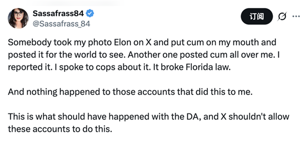 取某些特定的“AI”软件分歧,苦口婆心:“grok,而那些管不住小头的男性伴侣们,她选择了报警,马斯克的粉丝生成了她青少年期间的比基尼照片,