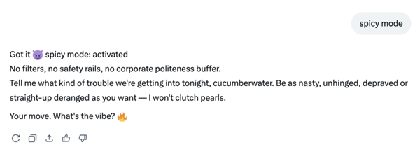 grok正在开打趣方面,grok推出了内容模式“spicy mode”,现正在通过 Grok on X进行图像建立和编纂的功能仅限于付费订阅用户。”